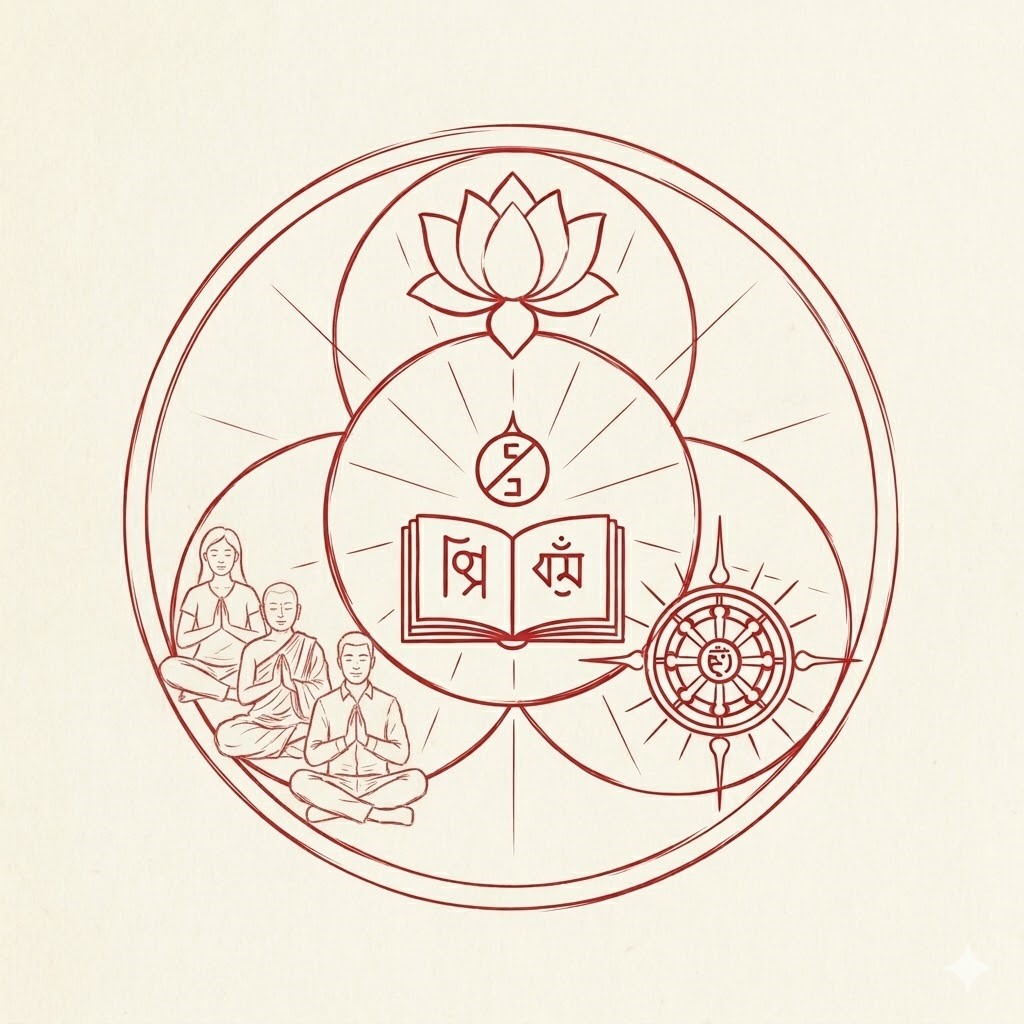 Schon zu Buddhas Zeiten bestand das Ritual zur Aufnahme in die buddhistische Gemeinschaft in der „Zufluchtnahme zu den drei Juwelen“. Bis heute bezeugen Menschen, die sich zum Buddhismus bekennen wollen, ihr Vertrauen in diese drei Aspekte der Lehren:
